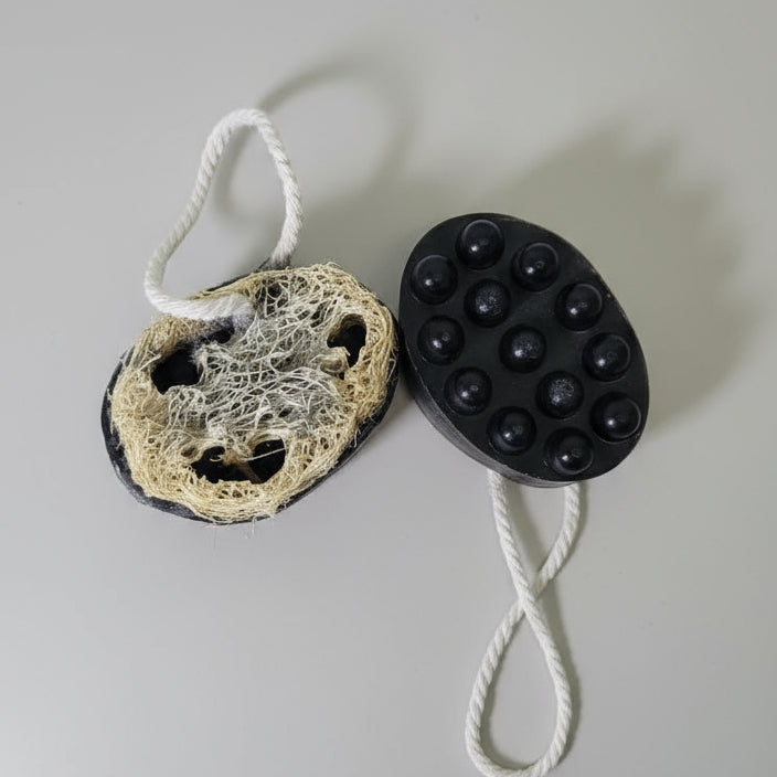 Charcoal + Tea Tree Massage Bar with Loofah Core