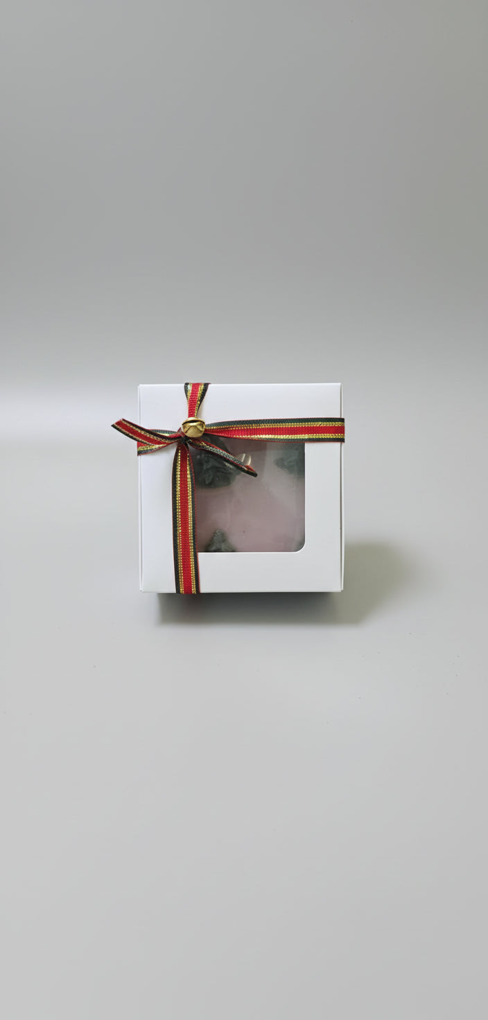 Step into the serene magic of White Christmas, a creamy goat milk soap bar swirled with soft white and green hues. Infused with the grounding scent of sandalwood and the gentle floral touch of lavender, this bar is enriched with blueberry extract and spirulina powder to soothe, balance, and brighten your skin.